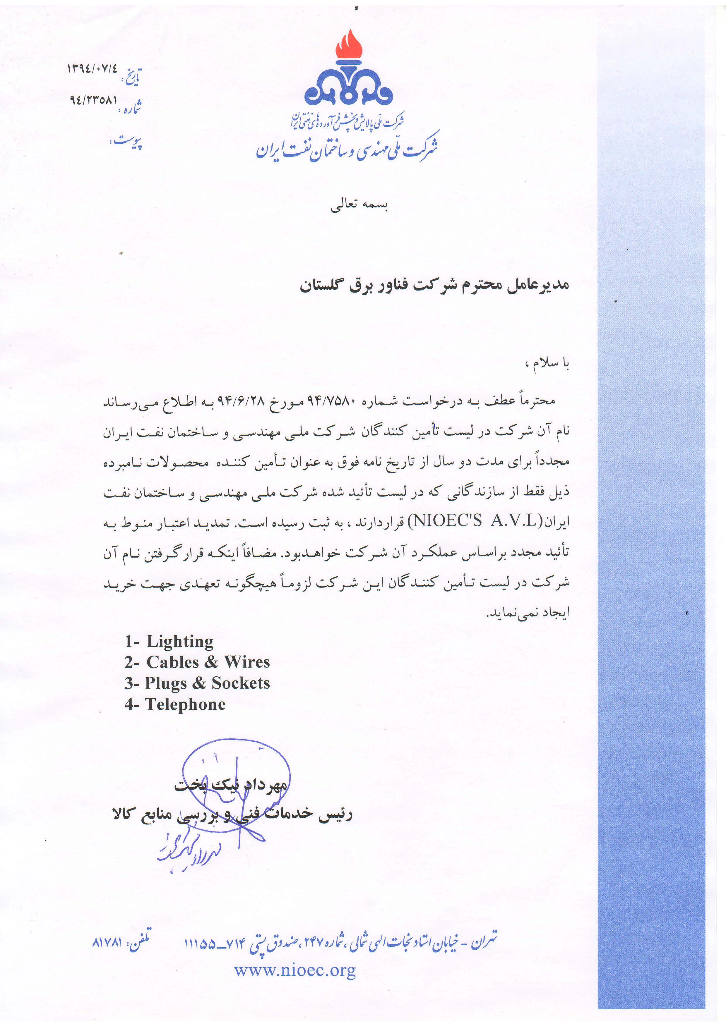 پشتیبانی، ساخت و تهیه کالای نفت تهران